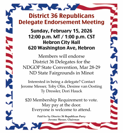 Members will endorse District 36 Delegates for the 2026 NDGOP